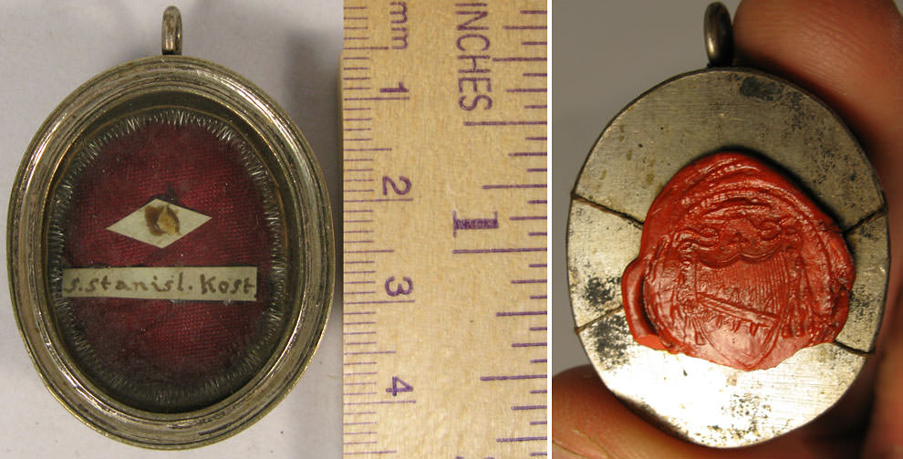 Saint Stanislaw Kostka S.J. (†1568) was a Polish novice of the Society of Jesus. The Holy See ratified his beatification in 1605; he was canonized in 1726. St. Stanislaus is a popular saint of Poland and many religious institutions have chosen him as the protector of their novitiates. He is invoked for palpitations of the heart and for dangerous cases of illness. Patron of Jesuit novices, students, Poland, Broken Bones.