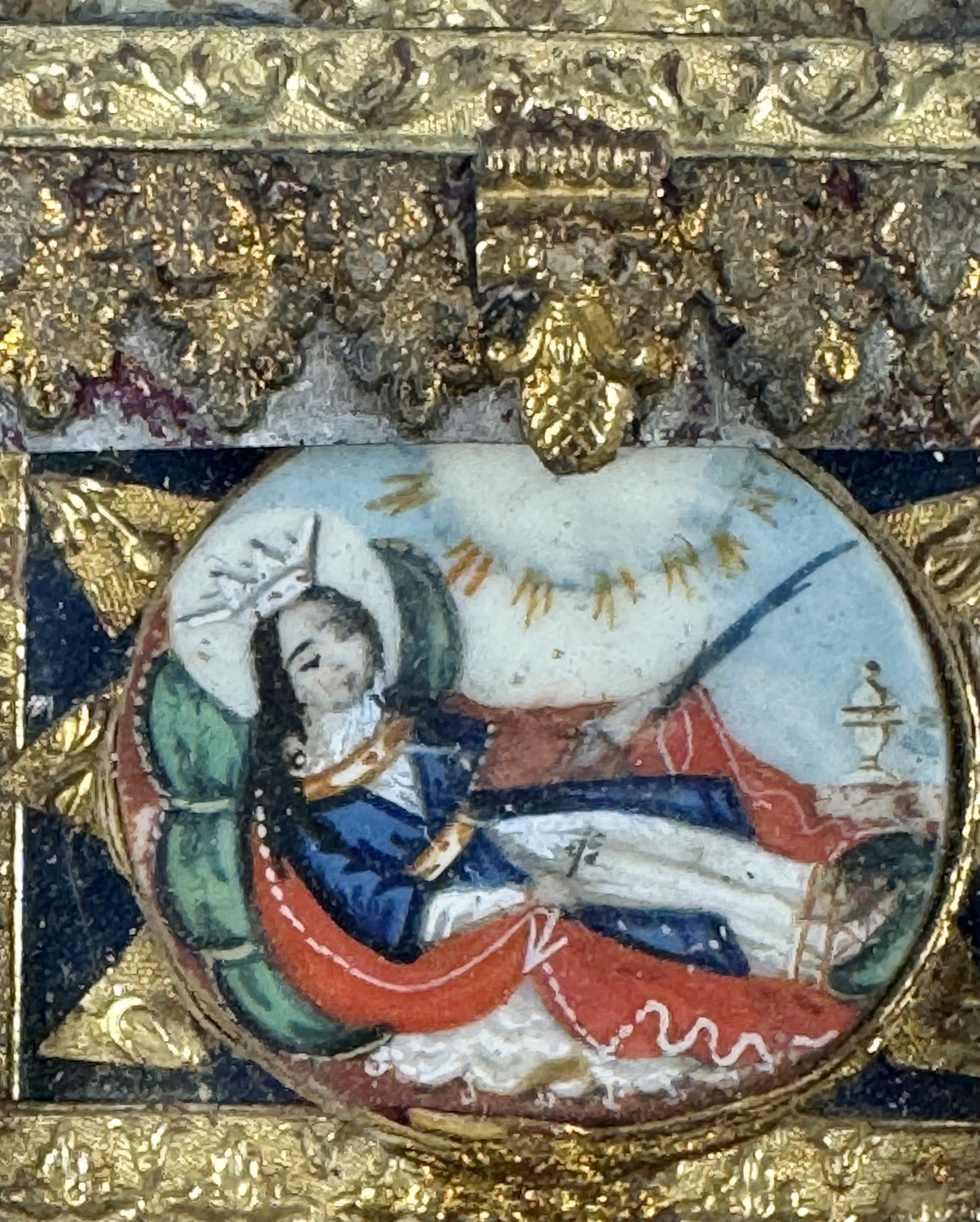 The Hair of Our Lady is the rarest and the most desirable of all holy relics and the only first-class relic we have of the Most Holy Mother of God. Since the Blessed Virgin Mary was assumed into Heaven with body and soul, no physical relics of Her exist. The sole exception is that of Her hair, which had been preserved and venerated since antiquity in the Holy House of Nazareth. The Holy relic was initially kept by the Patriarchs of Jerusalem until the fifth century, when it was ordered by the Byzantine Empress Pulcheria for the Holy relics of the Virgin's Veil and Hair to be translated to Constantinople.