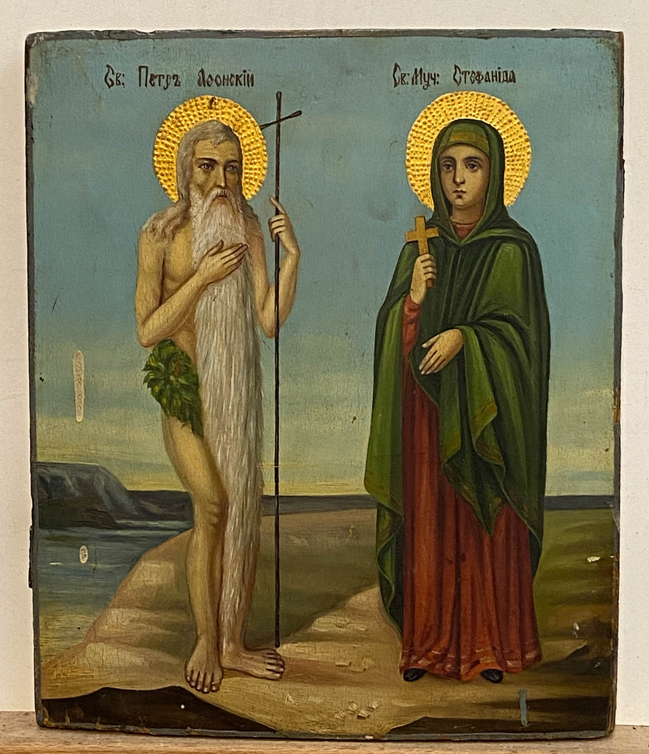 Peter the Athonite († before 883) is reputed to have been the first hermit to settle upon the Mount Athos. Peter is known to history primarily through unattributable legend. It is recorded that Peter was once a soldier who, through the miraculous aid of St. Nicholas and St. Simeon the Righteous, was freed from a Muslim military prison. From prison, St. Peter traveled to New Rome to fulfill a promise to God that he would take the monastic habit. It is held that Peter received his habit from the Pope himself who also formed the saint in monastic discipline. Receiving a vision of the Blessed Virgin and Theotokos Mary, Peter traveled to Mt. Athos and there lived for some fifty years.