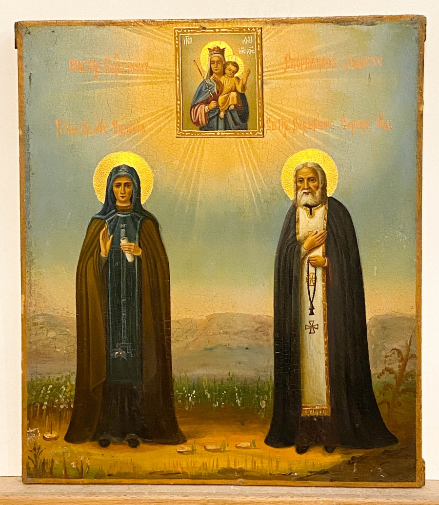 Saint Seraphim of Sarov (Серафим Саровский) († 1833), is one of the most renowned Russian monks and mystics in the Orthodox Church who was canonized in 1903. He is generally considered the greatest of the 19th-century startsy (the elders) and, arguably, the first. He is remembered for extending the monastic teachings of contemplation, theoria and self-denial to the layperson, and taught that the purpose of the Christian life was to acquire the Holy Spirit. He was canonized in 1903 in Sarov at the ceremony attended by the Tsar and senior members of the Russian Imperial family.