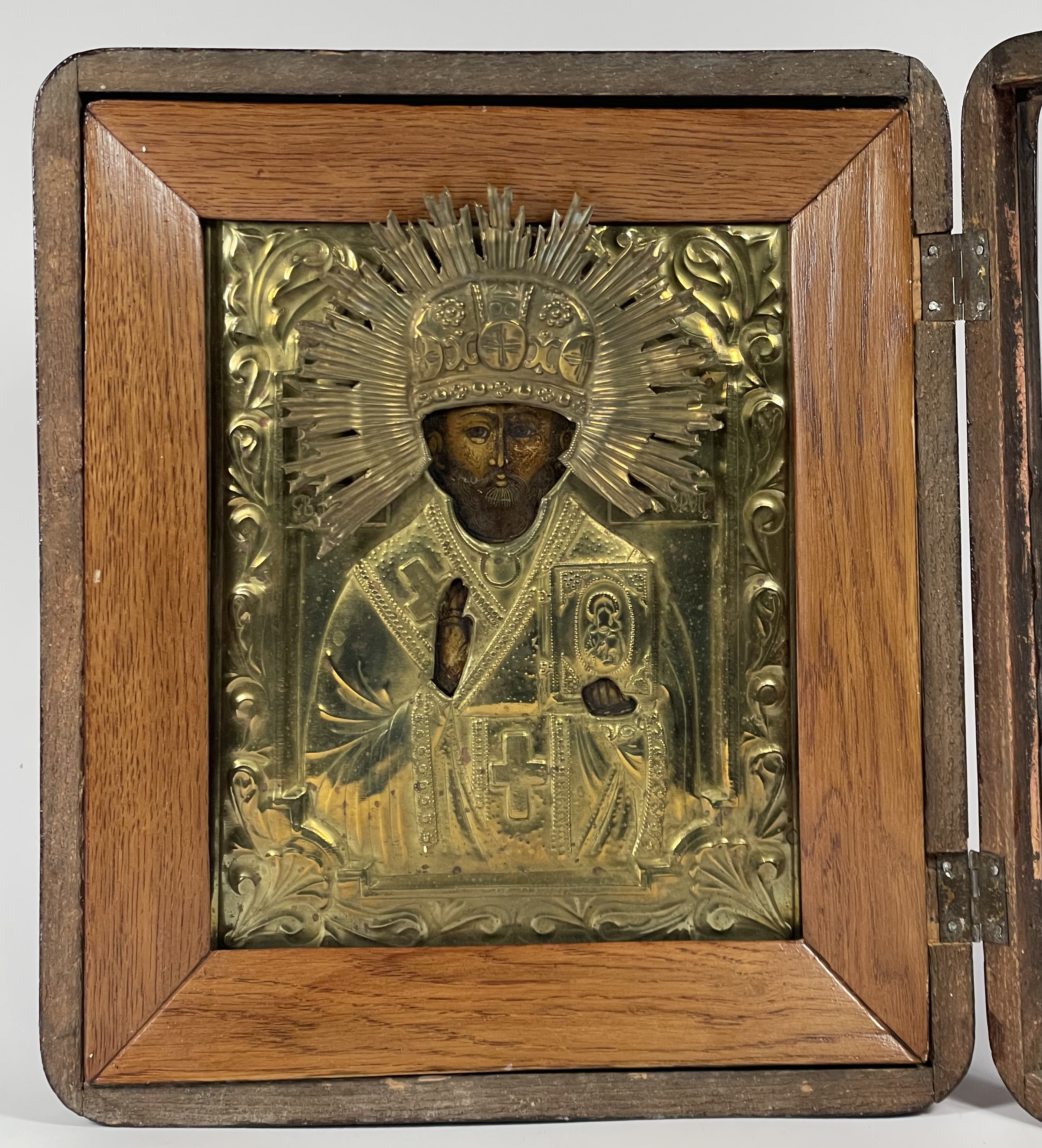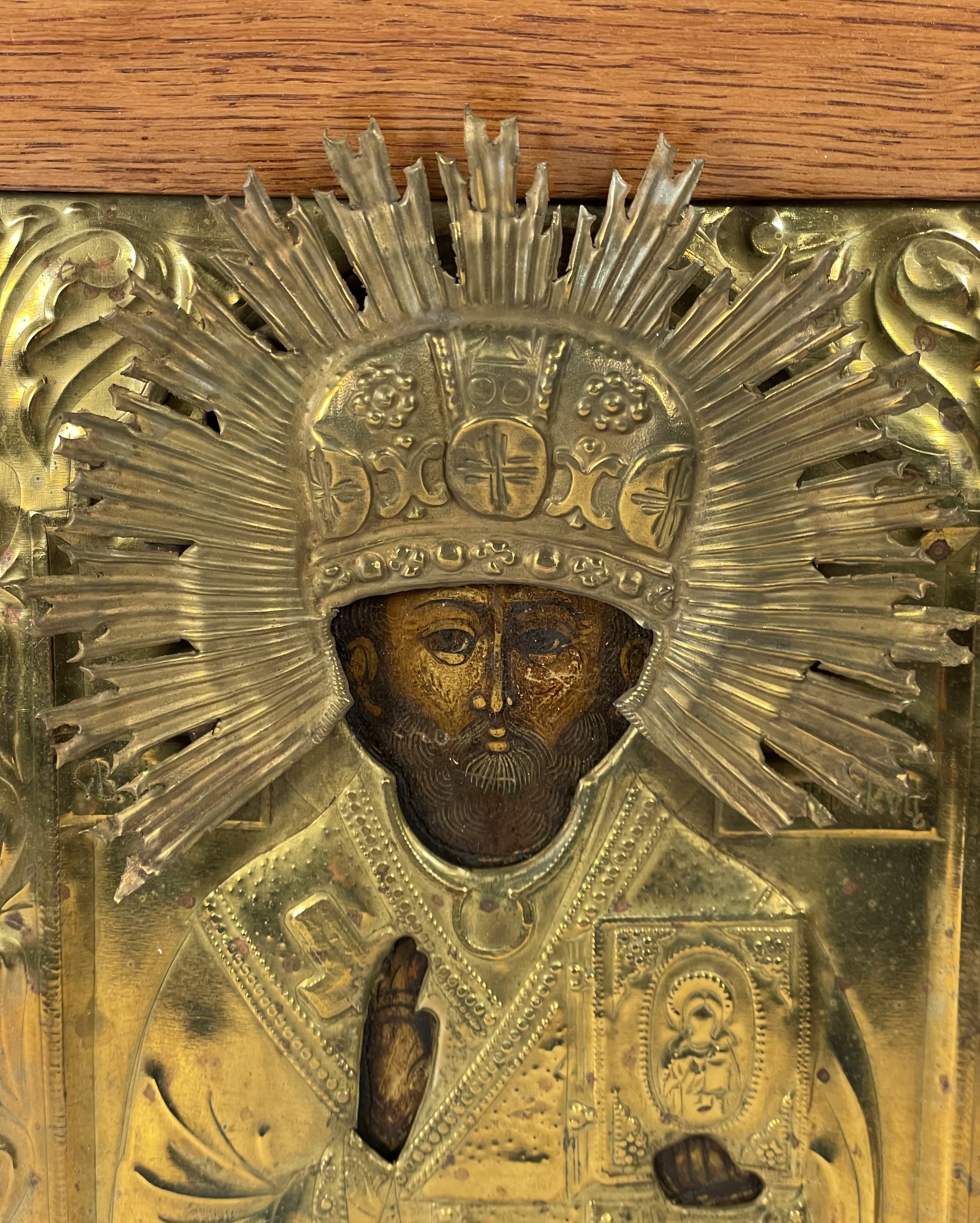 Икона - Св. Николай Мирликийский Чудотворец в окладе и киоте