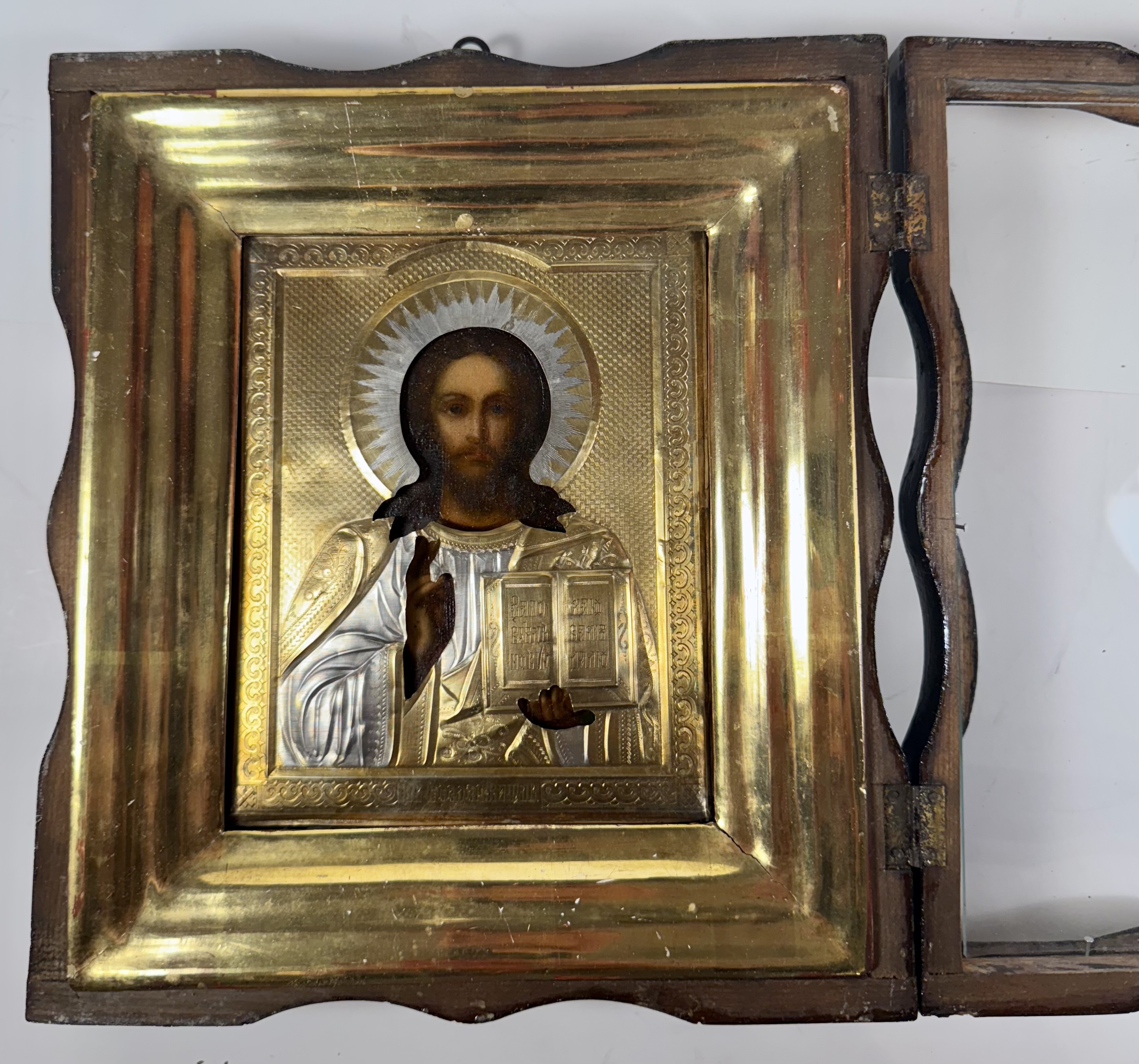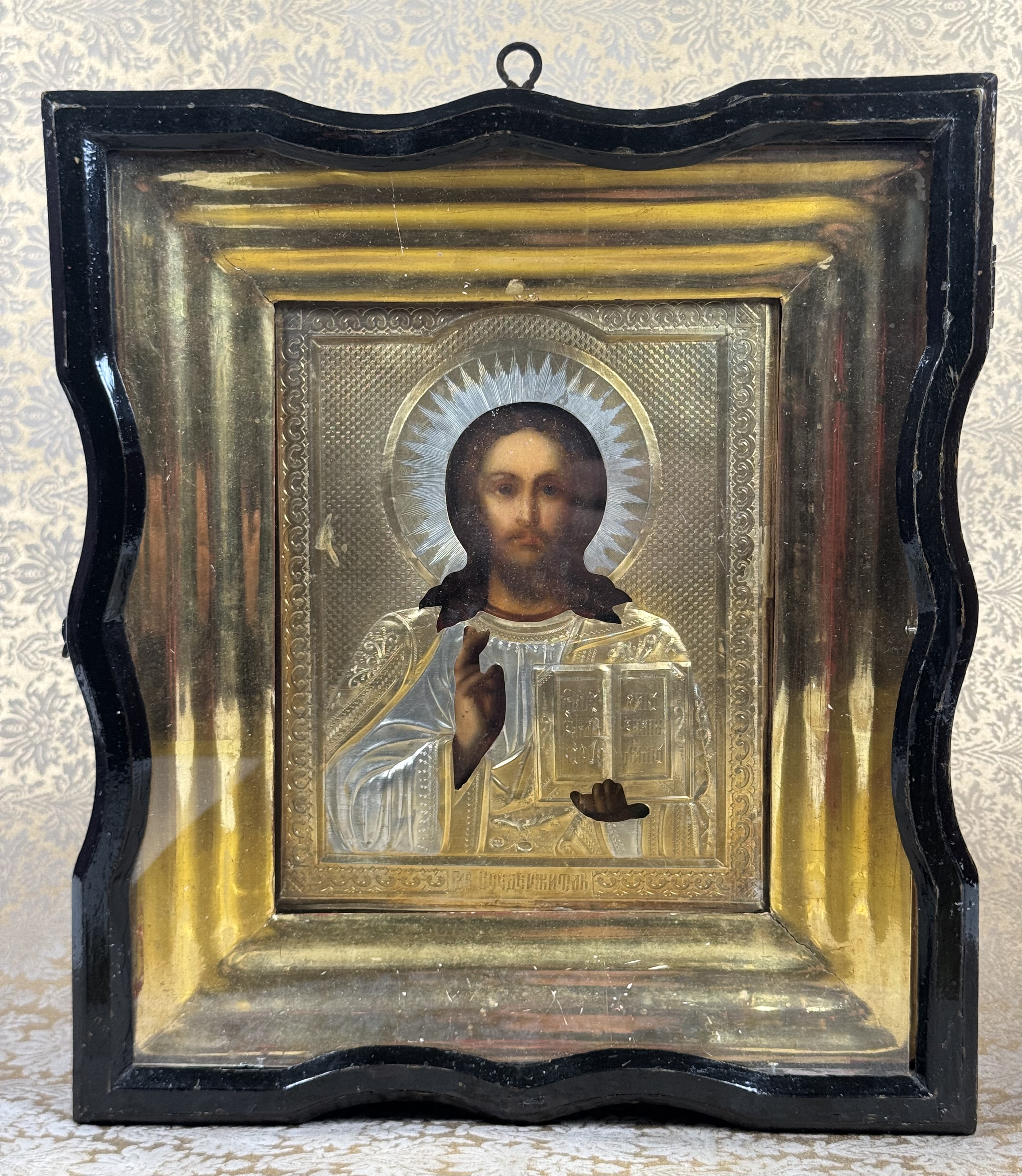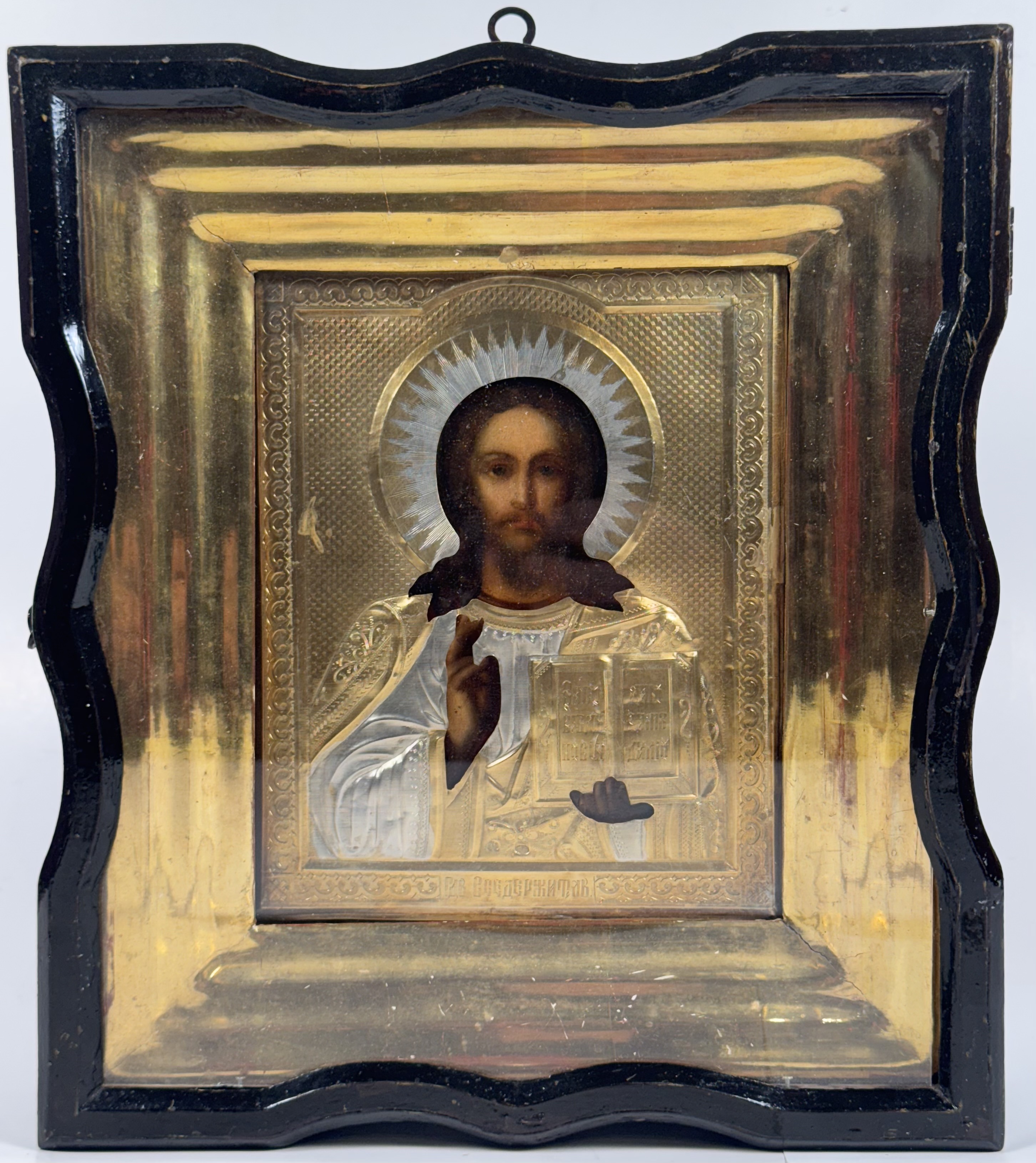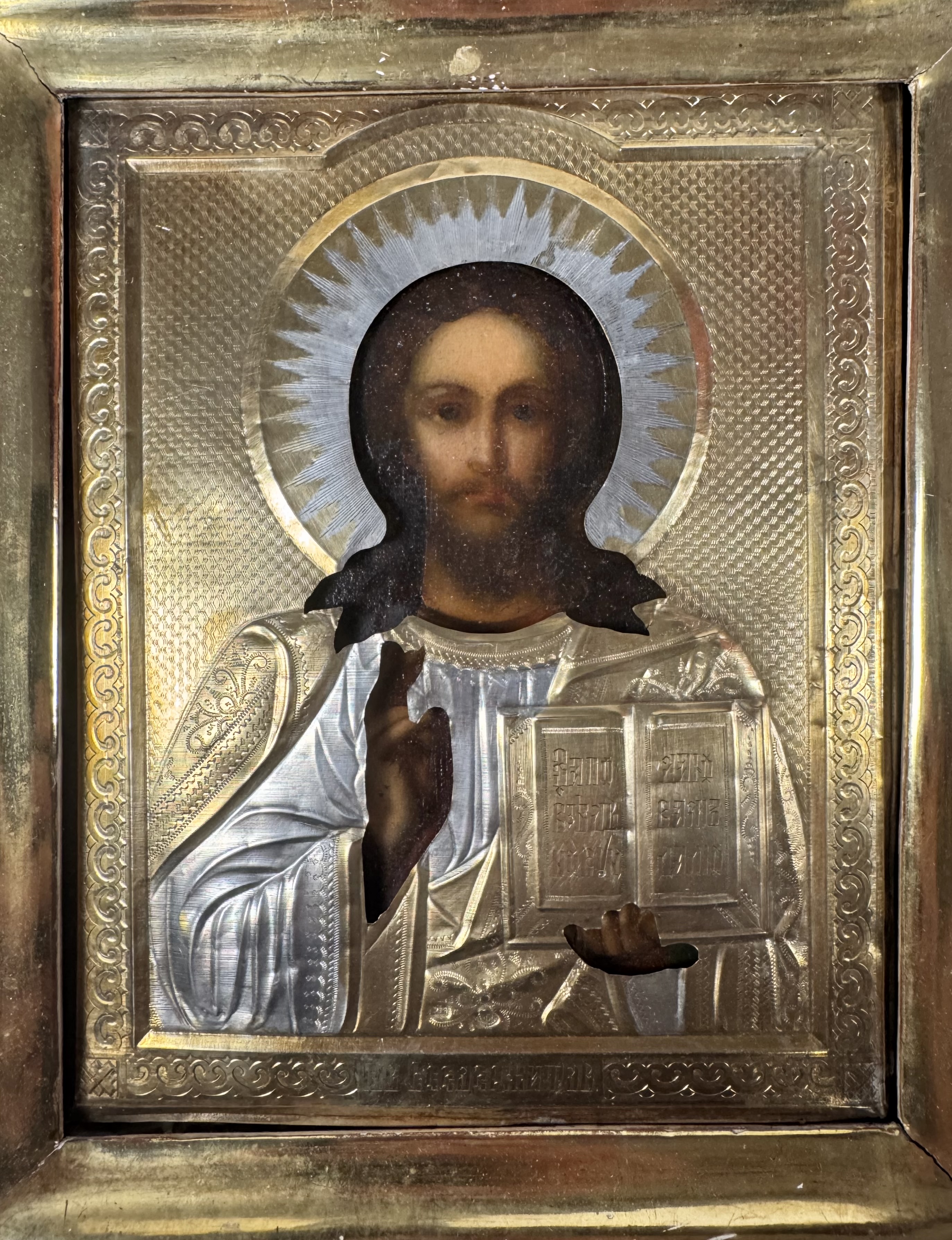 The gilt silver cover is hallmarked with Moscow 84 zolotniks (875/1000) silver purity mark dating 1900, and MM maker's mark for a silversmith Mikhail Maslov.