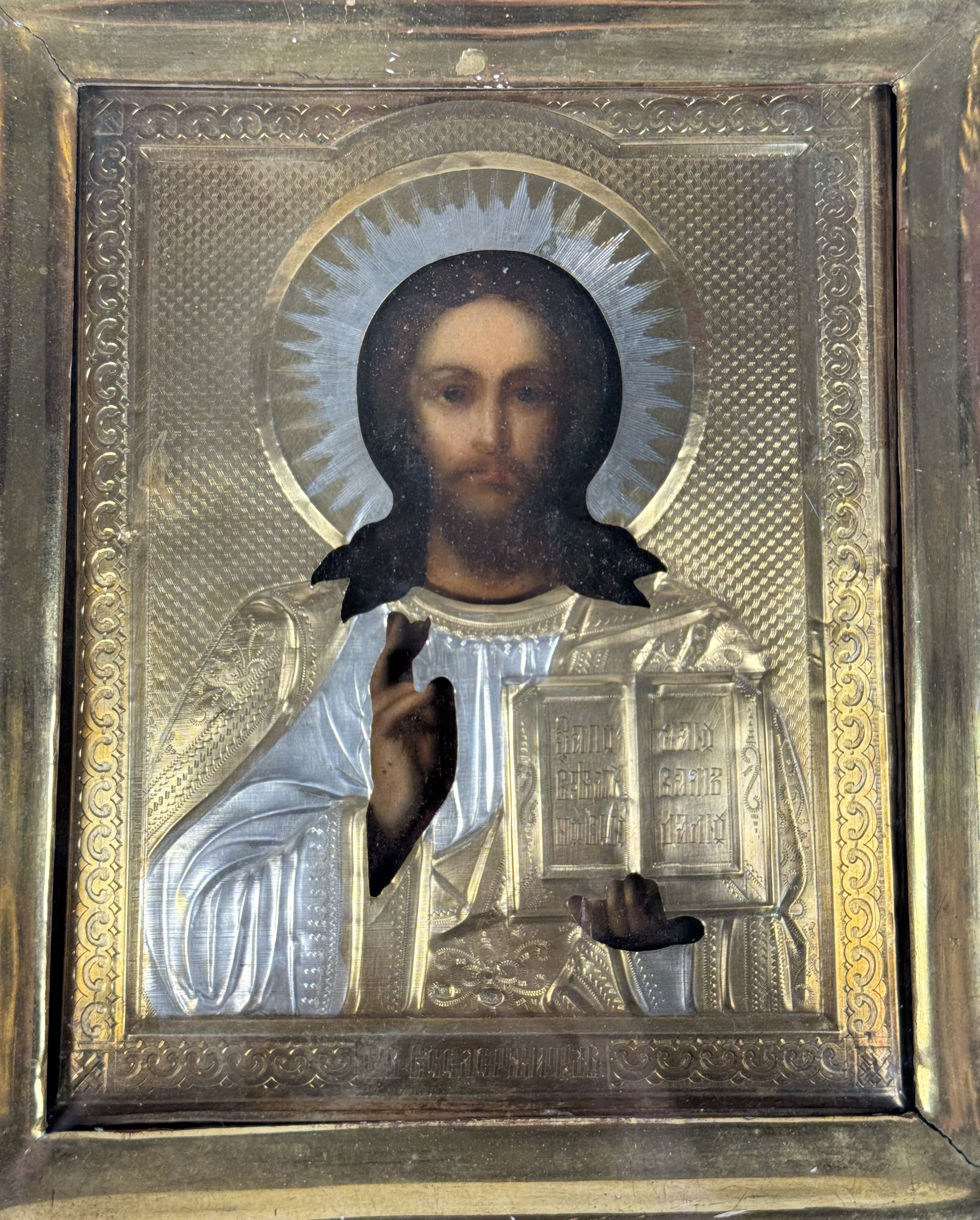 Christ Pantocrator refers to a specific depiction of Christ. The most common translation of Pantocrator is "Almighty" or "All-powerful". In this understanding, Pantocrator is a compound word formed from the Greek words for "all" and the noun "strength" (κρατος). This is often understood in terms of potential power, i.e., the ability to do anything, omnipotence. The iconic image of Christ Pantocrator was one of the first images of Christ developed in the Early Christian Church and remained a central icon of the Eastern Orthodox Church. Christ is depicted half-length, holding the Gospels in his left hand and making the blessing gesture with his right. The Gospels are opened on John 13: 24 “A new command I give you: Love one another.”